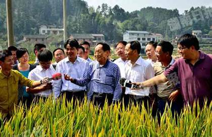 10月10日下午3時,國家農業部水稻高產攻關驗收組組長、中國水稻研究所所長程式華在溆浦對外宣布:第四期超級雜交稻新組合"Y兩優900"高產攻關溆浦縣橫板橋鄉紅星村102.6畝示范片,經專家組現場測產驗收,驗收結果為平均畝產1026.7公斤。這標志著,我國的超級雜交稻第四期畝產1000公斤攻關取得成功,并創下目前所測超級稻示范片百畝片均產最高紀錄。