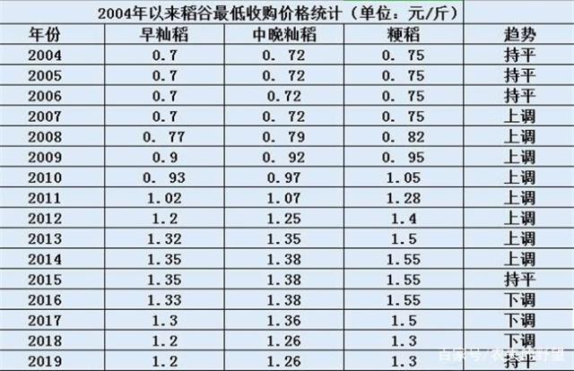 1、2019水稻最低收購價